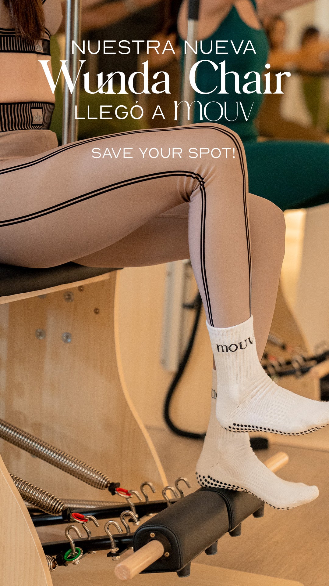Descubre una nueva forma de entrenar fuerza, control y precisión con nuestras clases de Wunda Chair, diseñadas para retar tu cuerpo y elevar tu práctica. Reserva tu Wunda favorita en el estudio o intégrala con tu Reformer favorito para una experiencia completa, dinámica y consciente. Tu movimiento evoluciona en MOUV.